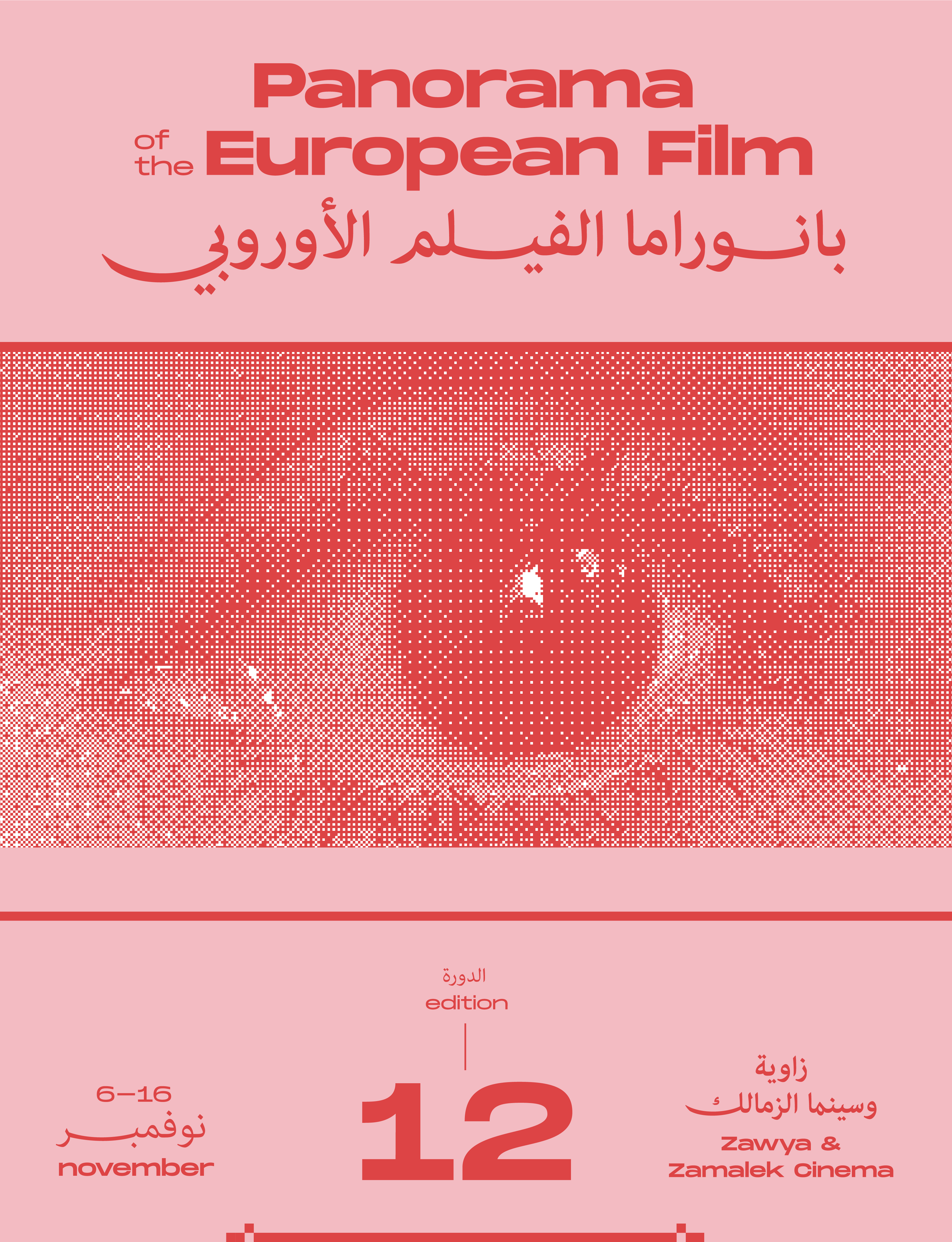 The Panorama of the European Film is an annual event that showcases award-winning feature and documentary productions from across Europe in Cairo. For the 12th edition, we worked on a bold identity that plays on the concept that films watch us, just as much as we watch them. The identity raises the question of what affects the other more? The audiences affects the cinema? And films are a mere reflection of the society we live in? Or is it the opposite?